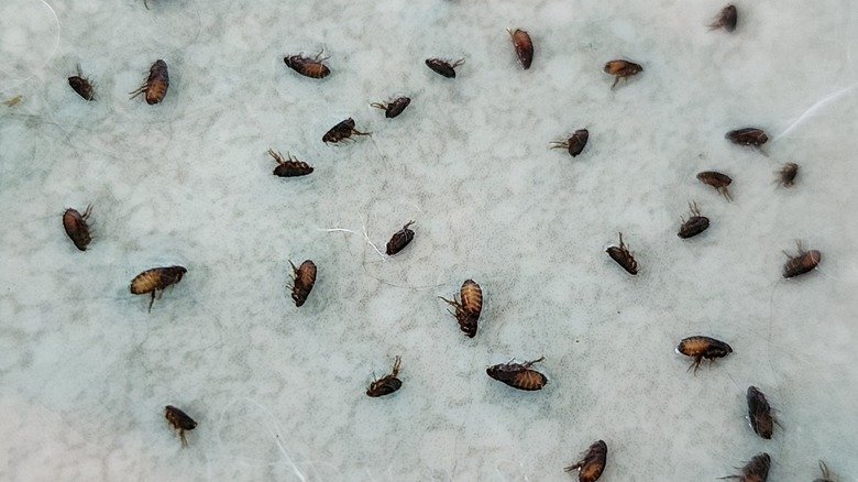 - Adult fleas jumping when disturbed